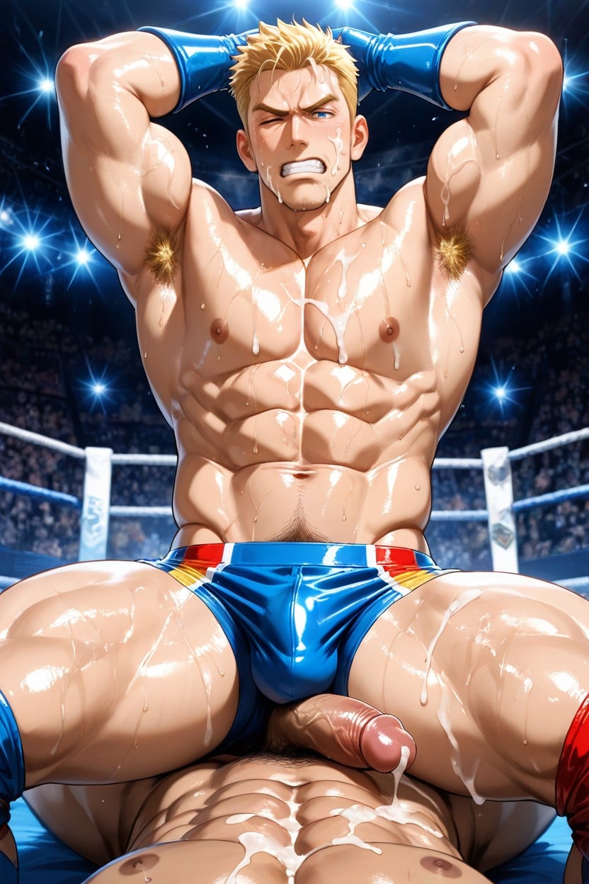 男、マッチョ、全裸、陰毛、包茎、巨根、茶色い肌、アニメ、イラスト、アニメイラスト、青年、汗ばんだ